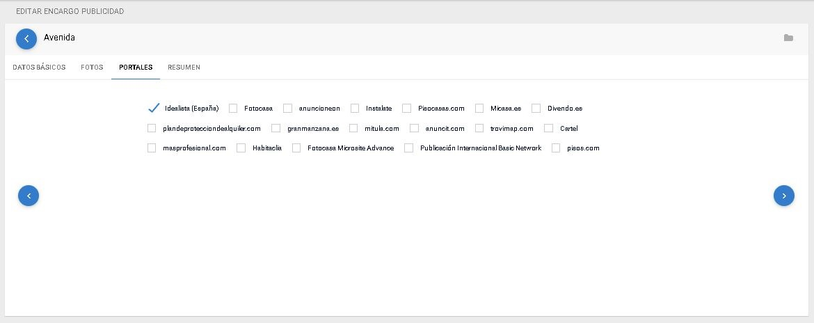 Podemos modificar los portales en que se publica cada encargo desde la pestaña Portales en la ficha de edición del encargo publicado.