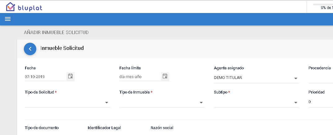 3. En la ventana añadir inmueble solicitud rellenaremos los datos de la solicitud: